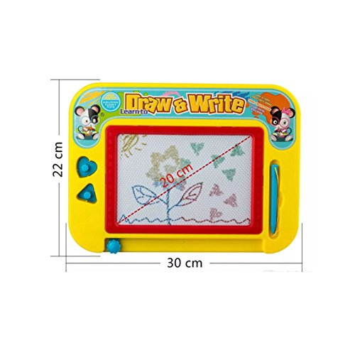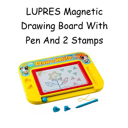 Studio : LUPRES Publisher : LUPRES Binding : Toy Product Description Functions and Play ways: Kids always love to sketch on the drawing board for hours. LUPRES magnetic drawing board is a wonderful replacement for traditional painting paper and is designed with easy slide eraser, which allows you to wipe out the doodles in seconds and start a new doodle creativity quickly. Also, colorful magnetic powder makes the drawing much vivider when the kids draw it, also helps kids with color recognition ability. Just choose LUPRES magnet drawing board to make your kids drawing easier and funnier! A satisfaction guarantee you: If you ever have any issue with your LUPRES magnetic drawing toys for kids, you can contact us for a refund or a replacement product. Specifications: - Board color: yellow