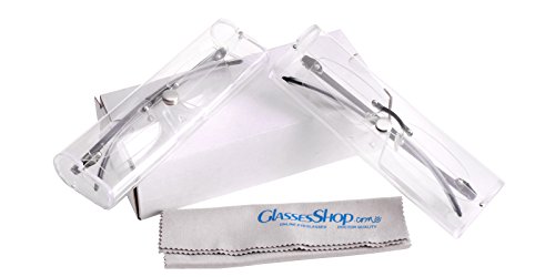 Glassesshop 2 Pack Clear Rimless Reading Glasses Super lightweight and flexible TR90 Material (2.00, 2 Pack)-Black and Gray