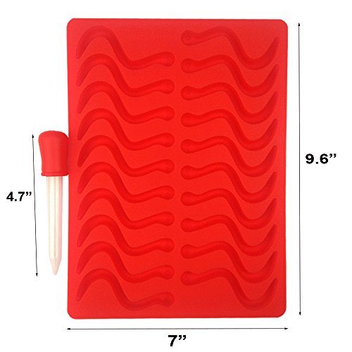 Mydio 20 Cavity Gummy Worm Silicone Molds with 1 Dropper,BPA Free FDA Approved,for DIY Candy,Cake Décor, Halloween Gummi Chocolate,Jelly Chocolate Soap Cake Wax,Red