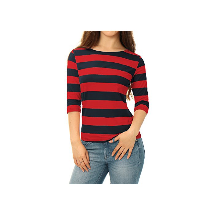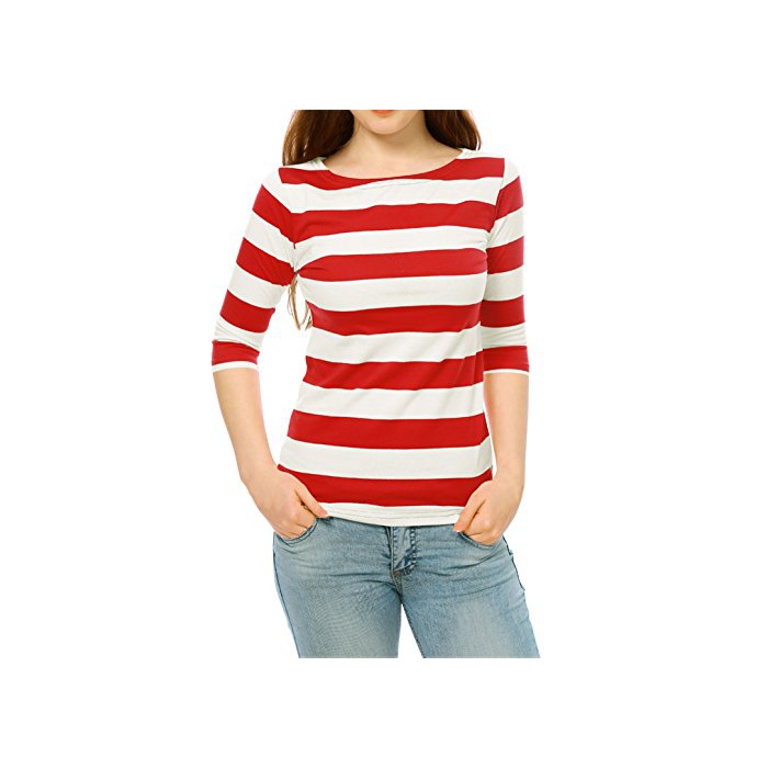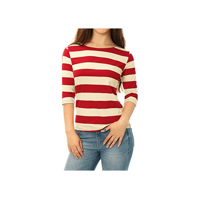 Allegra K (JP) 레이디스 보더 T셔츠 스트라이프무늬 입어 살이 빠지 5 분소매 보트 넥 레드 XL