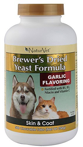 -. Binding : Misc. -. Brand : NaturVet -. Department : dog-skin-and-coat-care -. EAN : 0797801031127 -. Feature : Veterinarian Formulated and recommended / 100% Made in the USA with all natural ingredients / Happy pets make happy owners, use NaturVet for all your Pets Needs / Contains top quality debittered yeast that your dogs and cats love to eat. / Contains 5% garlic and fortified with B-1, B-2 and Niacin. / Includes Vitamin C as an antioxidant, which helps prevent flea anemia. / Works as a detoxifier and immune system rebuilder. -. Label : NaturVet -. Manufacturer : NaturVet -. Model : 978035 -. MPN : 978035 -. NumberOfItems : 1 -. PackageQuantity : 1 -. PartNumber : 978035 -. ProductGroup : Pet Products -. ProductTypeName : PET_SUPPLIES -. Publisher : NaturVet -. ReleaseDate : 2007-04-02 -. Size : 500 -. Studio : NaturVet -. Title : NaturVet Brewer's Yeast & Garlic Tablets, 500 Count -. UPC : 797801031127