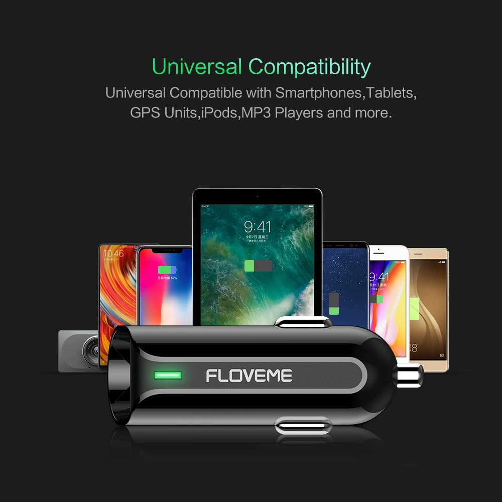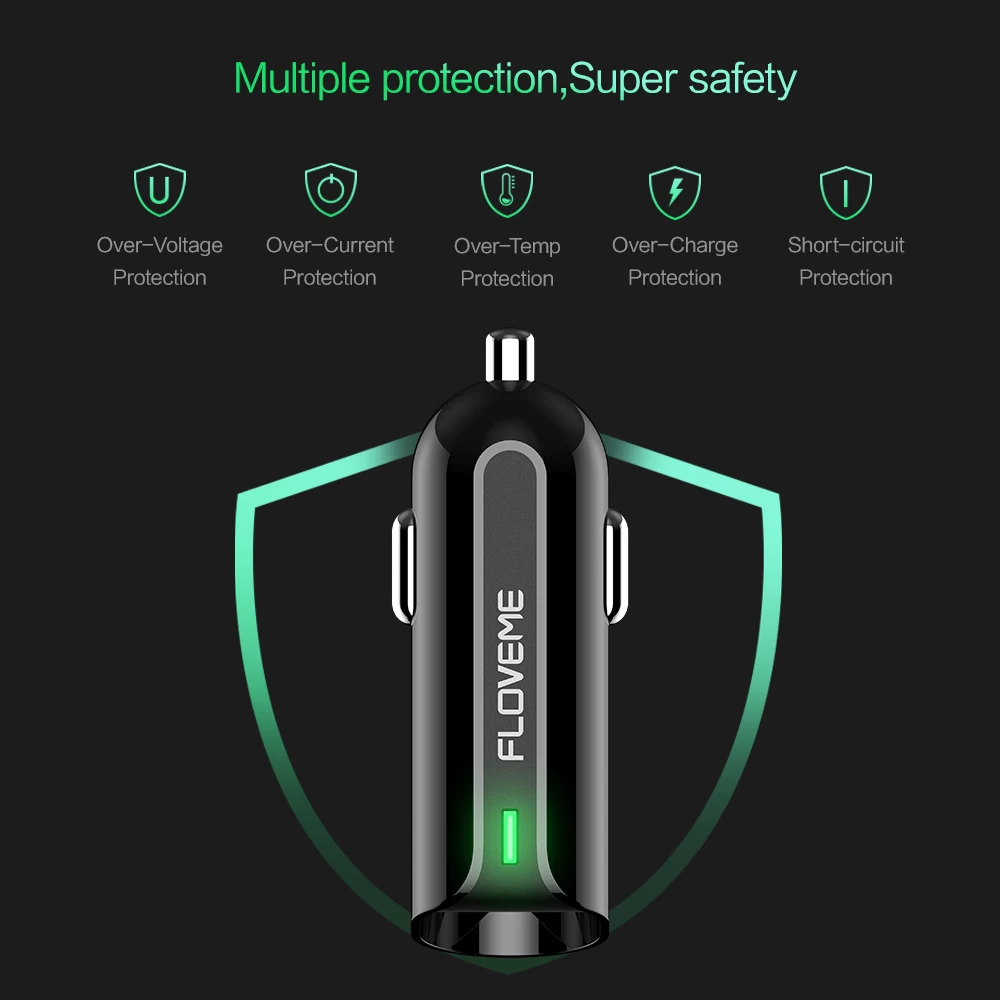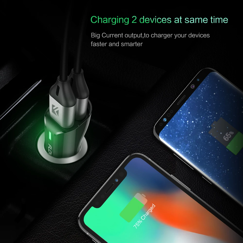 Feature 1:Dual USB (2 ports) 5V / 2.4A Fast Charging Car Charger Phone Adapter