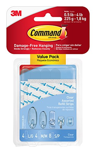 Studio : Command Publisher : Command Binding : Tools Home Improvement Product Description Command Clear Refill Strips make it easy to move and rehang your Command Clear Products. Like all Command Products, they stick to many surfaces, including tile, wood, metal and painted surfaces. Yet they also come off leaving no holes, marks, sticky residue or stains. Command Clear Refill Strips come in small, medium and large sizes. Also a great for replacement for double sided sticky tape. 0