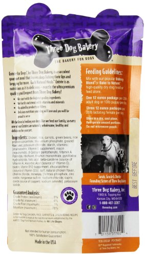 -. Title : Three Dog Bakery Gracie's Gourmet Entree for Dogs Chicken, Green Beans & Rice Recipe, 12-ounce