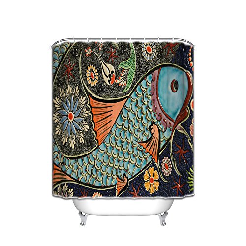 YEHO Art Painting Collage Of Underwater Photos With Collection Of Tropical Fishes Decorating Art Print, Bathroom Accessories shower curtain with Hooks- 66 x 72 Inch