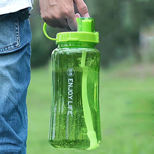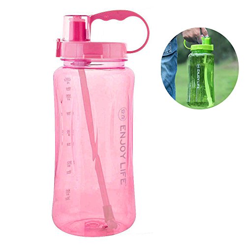 Features:safe food grade BPA Free plastic,transparent,scale printed,2L large capacity,easy to clean with brush and wide mouth,easy to carry with strap and human design handle,easy to drink with straw design also great for kids