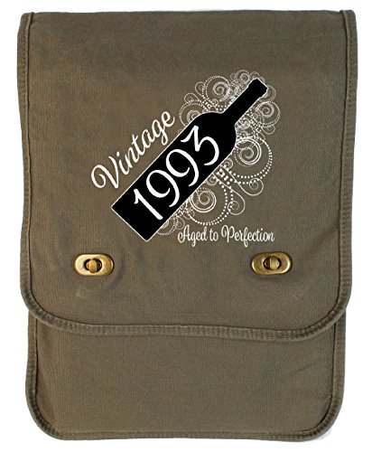 Studio : Tenacitee Publisher : Tenacitee Binding : Personal Computers Product Description Born in 1993 - Aged Like a Fine Wine Canvas Field Bag by Tenacitee. Express yourself! No boring bags here, this messenger bag is custom printed in our Oklahoma shop just for you. Made of 14oz 100% cotton canvas this bag is perfect for telling the world what you think while you're out and about town. We use the latest Direct to Garment printing technology for a vibrant and soft print with less wasted ink. The bag is machine washable, has several inside zippered pockets, an interior key leash hook, and a 2" wide adjustable shoulder strap. The bag measures approximately 13.5"x10.5"x3". 0