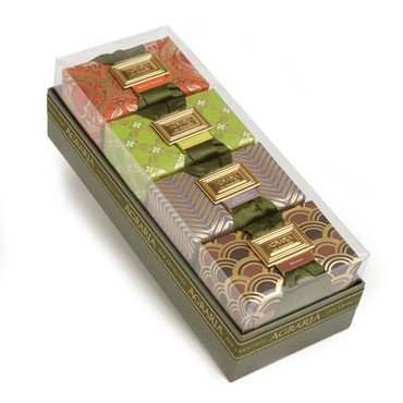 Agraria Luxury Bath Bars are delicately scented, triple-milled in the French process to ensure purity, consistency, and long lasting qualities. The bars create a creamy and silky lather that gently cleanses your skin leaving it feeling silky, refreshed, and slightly scented. Each bar is hand-wrapped in custom designed paper with gold foil details, and tied with a fashionable satin ribbon laced through a gold Agraria buckle. Distinctive patterns reflect each fragrance. 100% vegetable-based, each Bath Bar contains nature's best moisturizers: olive oil, vitamin E, rich shea butter, yucca oil, kukui oil, and sea fennel for exceptional cleaning and toning. The Santa Barbara Bath Bar Collection now includes new Golden Cassis, Lime and Orange Blossoms, Cedar Rose, and Mediterranean Jasmine.Feature