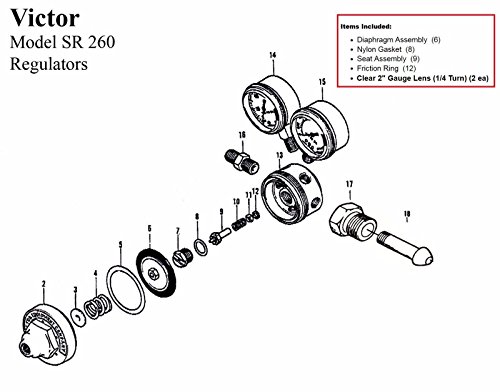 Victor SR260A Acetylene Regulator Rebuild/Repair Parts Kit w/ Diaphagm 0790-0051