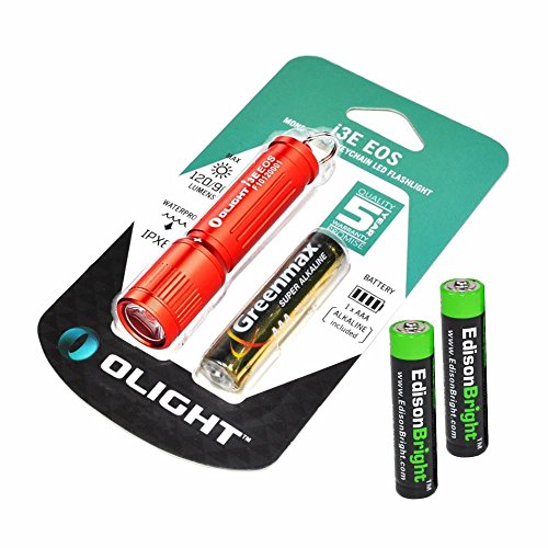 Olight I3E 90 Lumen LED purse Flashlight (Red Body) with 2 X EdisonBright AAA batteries