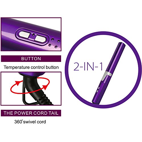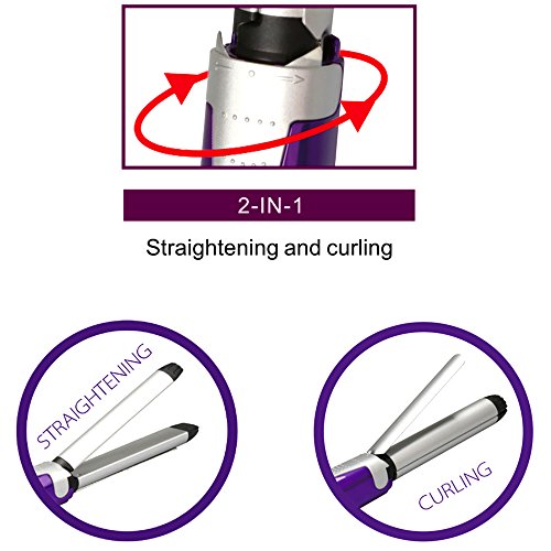 BERTA Professional Hair Straightener and Hair Curler 2 in 1 Curl & Straight Hair Flat Iron, Purple
