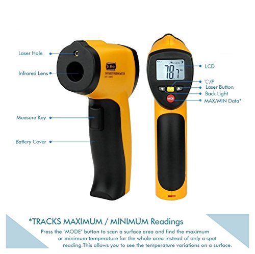 Dr.Meter The Dr.Meter® IR-20 infrared thermometer measures surface temperature of any object from a range of -50°C to +550°C! Test your freezer surface to your oven surface! Use it to find areas in your home where heat and cool air may be escaping from. Check your vehicle's engine or your water pipes.