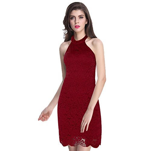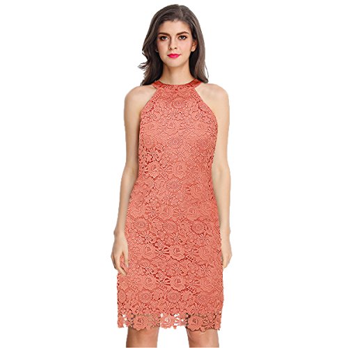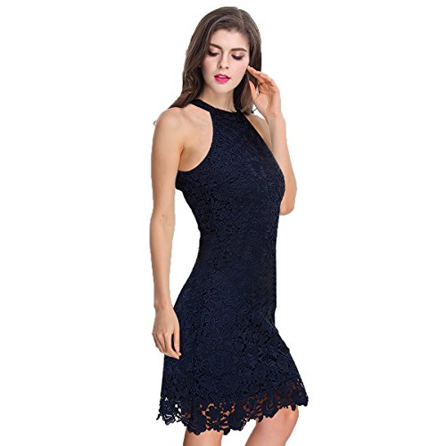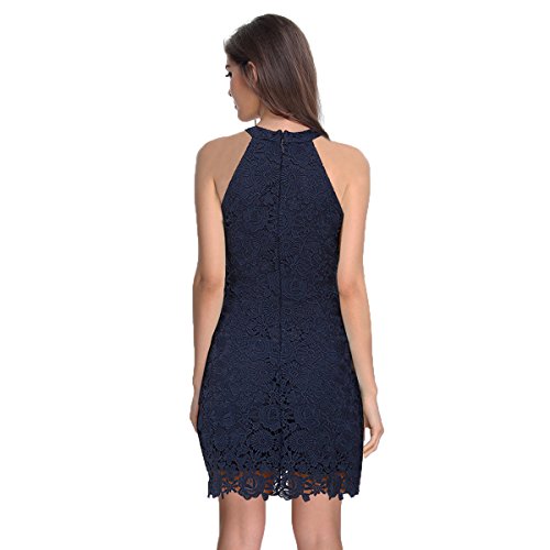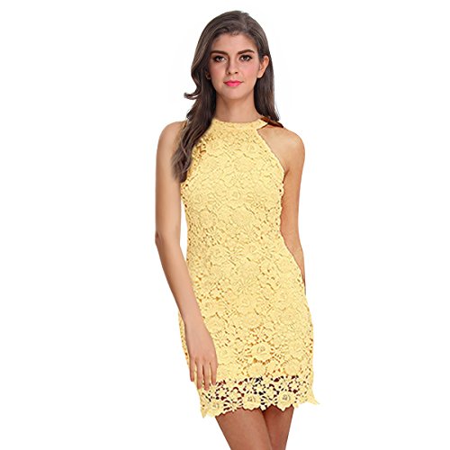 Sue&Joe Women's Sheath Dress Halter Floral Lace Crochet Above Knee Bodycon Dress