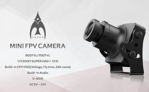 -. Binding : Electronics -. Brand : Foxeer -. Feature : Build-in FPV OSD and AUDIO,TV System: NTSC / Camera is only 12g,600TVL,high picture quality,13" SONY SUPER HAD II CCD / A customized 3pin servo cable is also included / This is a mini version of the classic CC1333 600TVL Sony Super Had II CCD board FPV camera / Low Power Consumption:70mA -. PackageQuantity : 1 -. ProductGroup : Photography -. ProductTypeName : SURVEILANCE_SYSTEMS -. Title : Crazepony Foxeer FPV Arrow Camera 600TVL 2.8mm Lens NTSC Sony Super Had II CCD IR Blocked with OSD AUDIO Black for QAV Multicopter