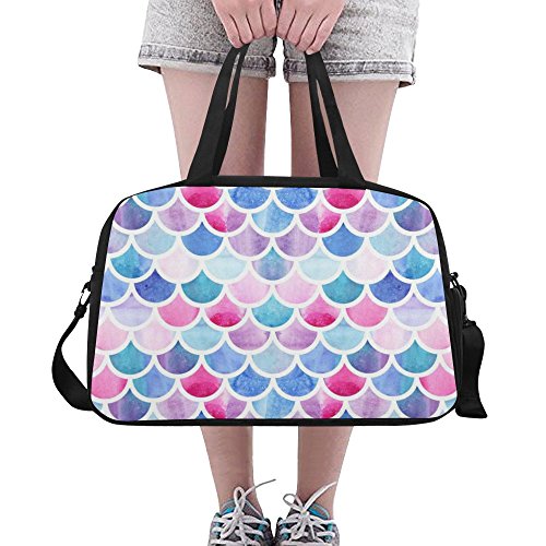 (InterestPrint)/Accessories/Luggage, Bags Travel/DIRECT FROM USA/InterestPrint Watercolor Mermaid Scales Duffel Bag Travel Tote Bag Handbag Luggage