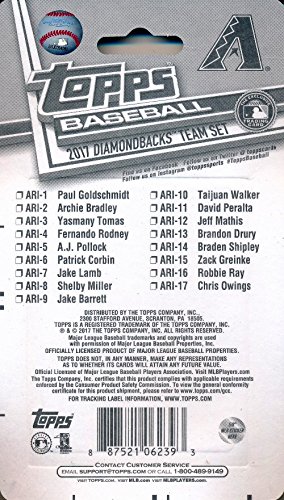 Arizona Diamondbacks 2017 Topps Baseball EXCLUSIVE Special Limited Edition 17 Card Complete Team Set with Paul Goldschmidt, Zack Greinke & Many More Stars & Rookies! Shipped in Bubble Mailer! WOWZZER!