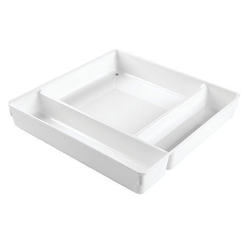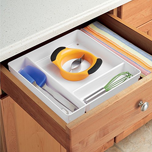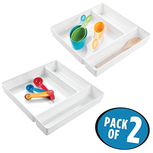 mDesign Kitchen Drawer Three Compartment Organizer for Wooden Spoons, Spatulas, Whisks - Pack of 2, White