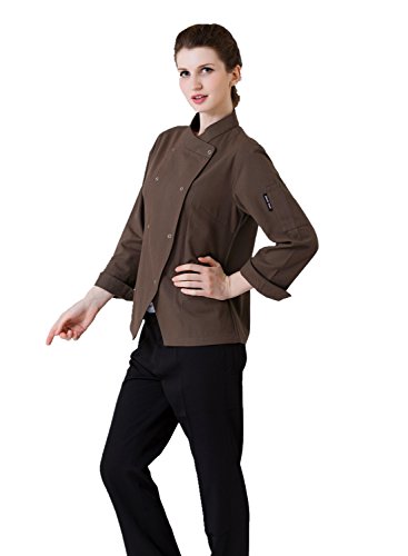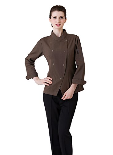 JXH Chef Uniforms Women's Long Sleeve Chef Coat Brown Blue and Olive
