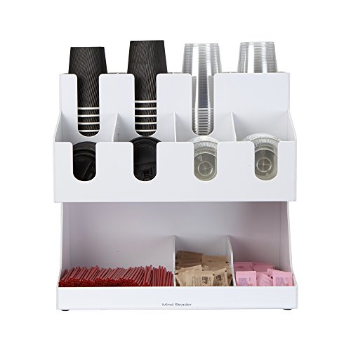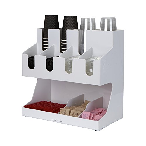 Studio : EMS Mind Reader LLC Publisher : EMS Mind Reader LLC Binding : Kitchen Product Description One piece coffee condiment organizer is made from a tough and safe plastic that will stand the test of time. This unit has 11 oversized compartments that is a necessity for any large Breakroom or lunchroom. Upscale acrylic looking unit sure to be a big hit. 0