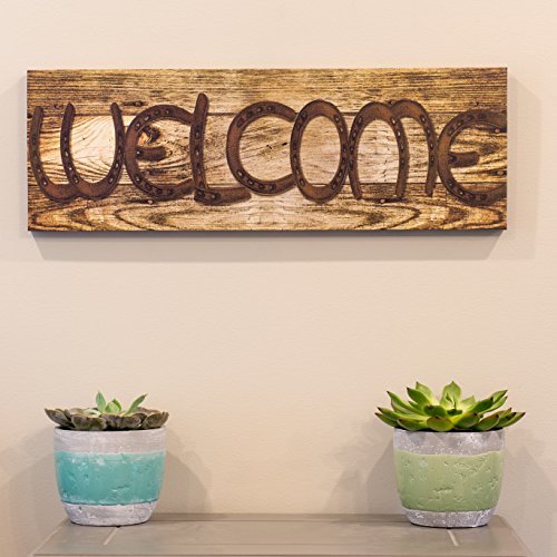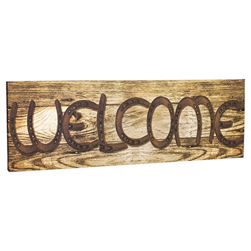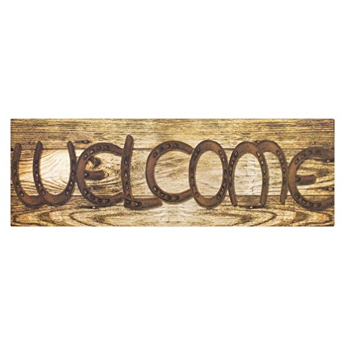 Welcome Lucky Horseshoe 24 x 8 Inch Stretched Canvas Hanging Wall Plaque