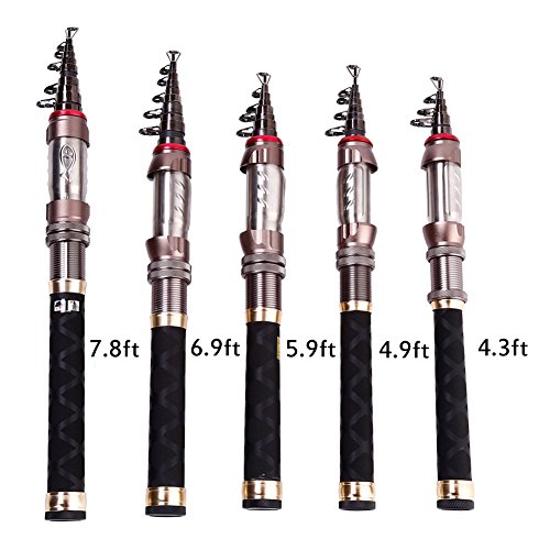 Fishing rod size of 4.9ft: Opened length: approx 5.25ft, Closed length: approx 11in, Weight: approx 4.2oz, Sections: 9.