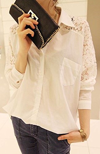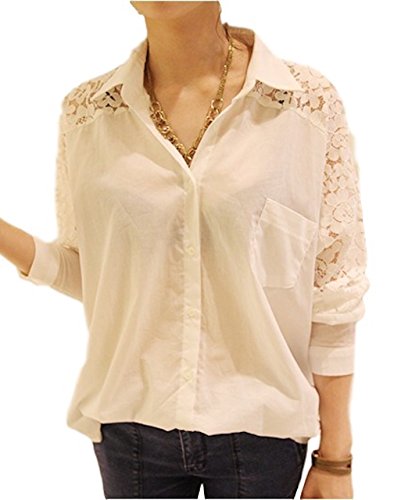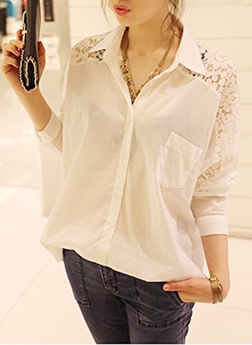 -. Feature : 大人可愛い刺繍レースのVネックベーシックシャツブラウス。シンプルなシャツに、オシャレ刺繍レース。【表】はハンサム、【裏】はレディに、前後で異なる「かわいい」を感じます。 / シンプルな中に可愛さが添えられたデザインです。クローゼットに1枚は持っていたい、ベーシックデザインの【シャツ】、清潔感のあるデザインはオフィス使いにも丁度いい!シンプルなシャツブラウスはオンでもオフでも活躍してくれるので嬉しい!サラッと着用できるのでこれからのシーズンに重宝できること間違いなし! / ネックのVラインによってお顔をシャープに見せてくれる優れ物です。スカートにもパンツにも合うから組み合わせ自由でコーディネートバッチリ! / ■サイズ S、着丈61cm バスト134cm 袖丈64cm M、着丈63cm バスト139cm 袖丈65cm L、着丈65cm バスト144cm 袖丈68cm XL、着丈67cm バスト149cm 袖丈69cm / ※平置き採寸のため、サイズに若干の誤差が生じる可能性があります。 撮影時の照明、ディスプレイの違いなどにより、多少色合いが実物と異なる場合があります。海外商品のため、日本製と比べますと縫製などが劣る場合がございます。新品ですが保管・輸送によるシワなどがある場合もございます。あらかじめご了承ください。