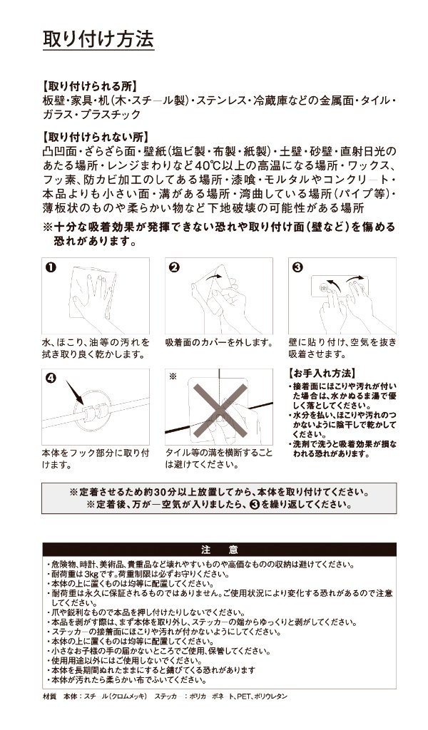 ● ※ There is fear that sufficient adsorption effect can not be demonstrated and the mounting surface such as walls may be damaged