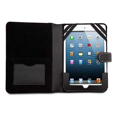 - Fold over strap with snap closure - Interior compartment, and card pocket - Fits most electronic readers up to 8 1/4'' H x 5 1/2'' W - All man-made materials
