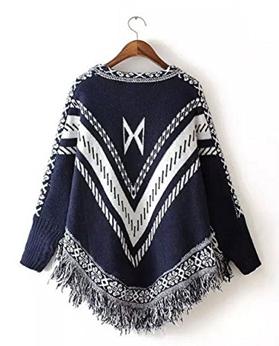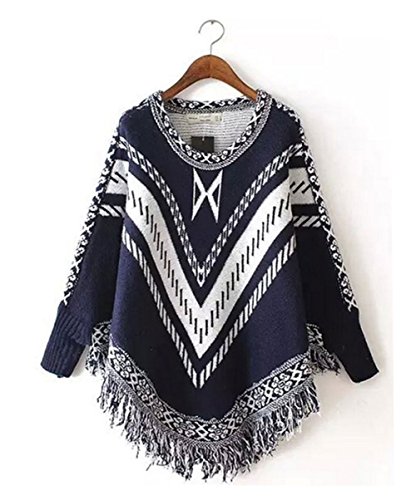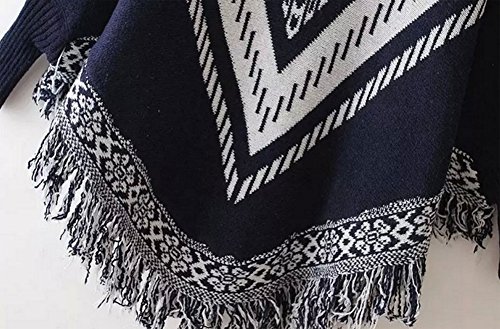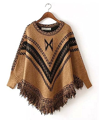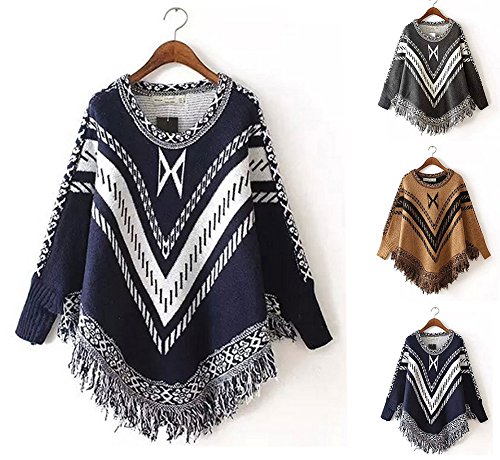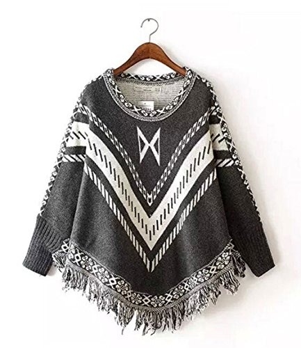 (StylesILove.com)/Accessories/Cold Weather Accessories/DIRECT FROM USA/Round Neck Knit Tribal Print Tasseled Warm Poncho with Sleeves
