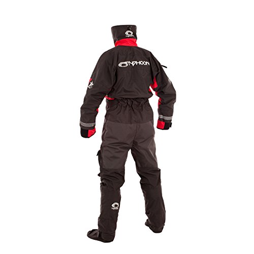 Studio : Typhoon Publisher : Typhoon Binding : Misc. Product Description Top of the Range Front Entry Drysuit with a 3 Year Warranty! This is the choice of the shop. We wear this suit for dinghy sailing in the winter. Out of all the drysuits we stock this is the best drysuit we have come across for dinghy sailing. Soft 4 layer highly breathable and waterproof fabric combined with the high fleecy neck make this a very comfortable and warm suit to wear. Never do we come in wet or cold. If you come in to the shop looking for a drysuit for dinghy sailing then you will leave with one of these. Features: 3 Year Warranty! Quad Ply breathable fabric throughout Adjustable storm neck collar Reflective piping on collar Reflective logo on wrists Cordura reinforced knees seat elbows Pre bent arms and legs Glide Skin seals on neck and wrists Adjustable wrist and ankle covers Extra long lower leg covers Pre bent arms and legs Elasticated waist Cordura reinforced knees seat and elbows Fabric Socks Internal braces Metal tooth BDM zip Free Lightweight Under Fleece Made from a thermofiber fabric with a double action front zip and ankle and thumb loops this suit is ideal for surface use or warm water diving under a drysuit it has a TOG rating of 1. Size Charts 0