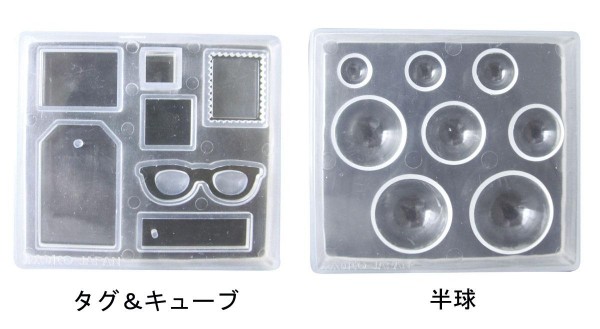 レジンや粘土の型抜きに使用できる、柔らかい素材のモールドです。紫外線を通す透明なモールドなのでUVレジンがきれいに固まります。 |