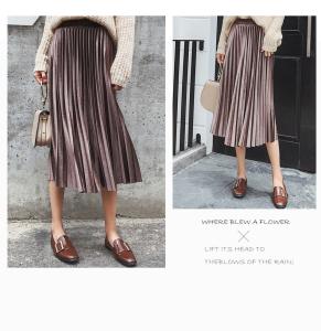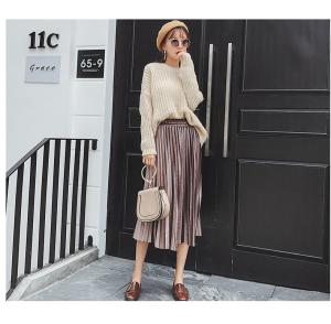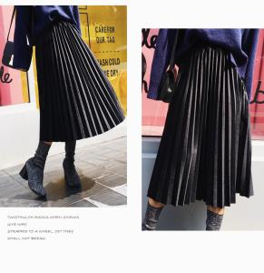 プリーツスカート ミモレ丈 膝丈 ベロア ベルベット 2017トレンド プチプラセール AW 秋冬