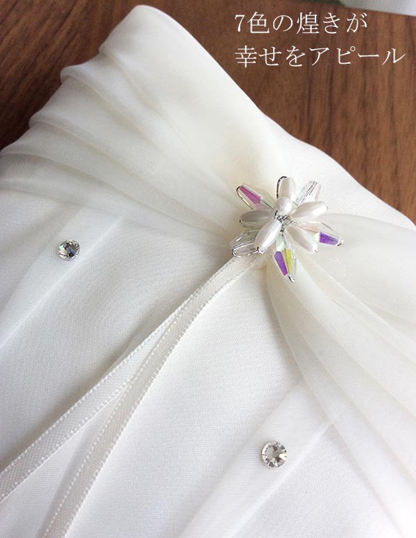 ウエディングにぜひ、7色にきらめくスワロフスキービーズとパールが施されたリングピローです!(完成品)マットサテンの生地をベースにオーガンジーのやわらかさをプラス。きらめくスワロフスキーを散りばめて上品なテイストです。カラーはオフホワイトです。【検索キーワード】ウェディングドレス/ウエディングドレス/白ドレス/マリッジ/ブライダル/ガーデンウェディング/フォトウエディング/花嫁/新婦/ブライズ/挙式/結婚式/披露宴/パーティ/パーティー/チャペル/教会/人前式/セレモニー/海外/リゾート/ホテル/式場/2次会/1.5次会/前撮り/アクセサリー/ヘアアクセ/ウエディング小物/ウェディング小物/Wedding/Bridal/ギフト/プレゼント/贈り物/花/フラワー