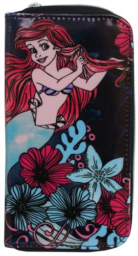 Feature : Black and multicolored Disney The Little Mermaid "Ariel" women's/teen zipper wallet / Officially Licensed Disney The Little Mermaid Ariel Teen/Women's accessories / Zipper wallet with metal zipper; Made of top quality man-made materials; Zippered coin pouch; Main middle pouch has card slots / Wallet size 7.5" X 4" X 1"- One Size / Features: Disney The Little Mermaid "Ariel" combing her hair with her "Thing-a-ma-bob Fork"