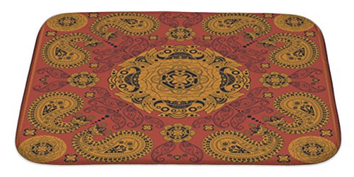 Gear New No Slip Microfiber Memory Foam Square Ornamental Pattern with Flowers Bath Rug Mat, 34" X 21"