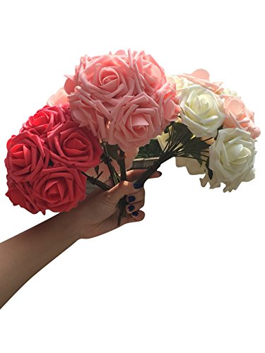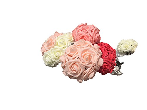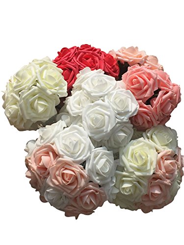 50pcs Artificial Rose Flowers White Pink Red Lvory champagne Rose Flowers for Wedding Bridesmaid Bridal Bouquet Party Baby Shower Decorations DIY(JH11-white)