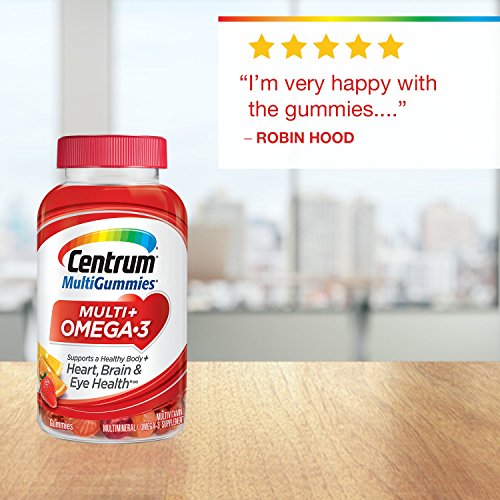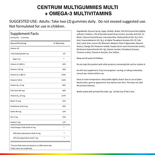 Centrum MultiGummies Multi + Omega-3 Gummy Multivitamin / Multimineral Supplement (Natural Strawberry, Lemon & Orange Flavors, 100 Count)Feature