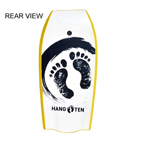 -. Brand : BeachMall -. Feature : Lightweight, durable, water-resistant hard slick bottom. Bat tails shaped bodyboards are designed for big ocean waves to provide the board with more drive and manoeuvrability due to the extra surface area that the bat tail created. The bat also makes the tail a lot looser which helps to release the bodyboard from the lip when performing airs. / High performance EPS Core giving good buoyancy; XPE deck giving a smooth surface / Built-in and adjustable rentention wrist leash to keep board close to body / Recommended for riders that are 62 - 69 inches and weigh 140 - 170 lbs. / Width Dimensions (inches): 16 Tail; 11.3 Nose; 20 Widest; Bodyboard weighs 1.9 lbs and has thickness of 1.9 inches -. Label : BeachMall -. Manufacturer : BeachMall -. PackageQuantity : 1 -. ProductGroup : Sports -. ProductTypeName : OUTDOOR_RECREATION_PRODUCT -. Publisher : BeachMall -. Studio : BeachMall -. Title : 41 inch Hard Slick Bottom Performance Bodyboard