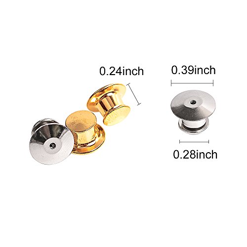 - PRODUCT DIMENSIONS- 40 pieces safety pin keeper backs in one box, 20 pieces silver and 20 pieces golden. Each size:1cm (0.39")in diameter,0.6cm (0.24") in height
