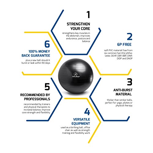 Exercise Ball - Professional Grade Anti-Burst Yoga Fitness, Balance Ball for Pilates, Yoga, Stability Training and Physical Therapy