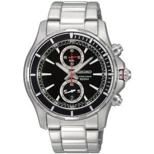 -. Title : Seiko Men's Chronograph Stainless Steel Case and Braclet, Black Dial SNN243