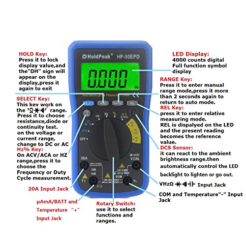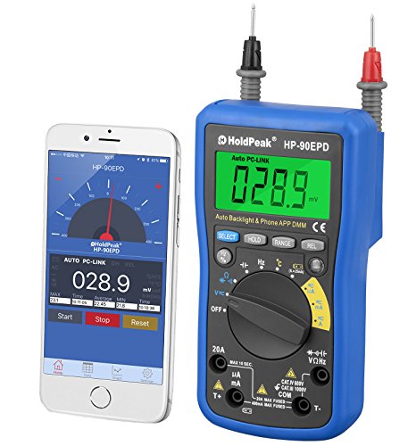 HOLDPEAK 90EPD Digital Auto-ranging Mobile APP DMM Multimeter With Diode And Continuity Test-Measuring DC & AC voltage,DC & AC current,resistance,capacitor,frequency,duty cycle,temperature