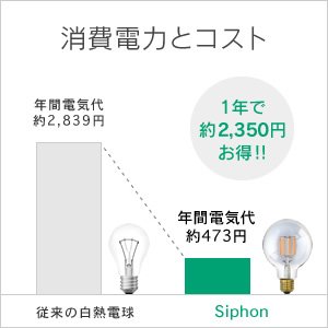 · Power consumption is about 1/5 ~ 1/6 of incandescent bulbs, save more than 2000 yen per year.