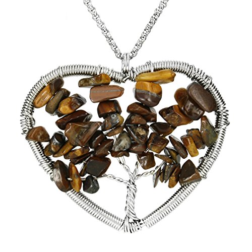 -. Feature : Stone: Gemstone Chip Beads / Pendant Size: 50 x 55 mm;Stainless Steel Necklace Chain: 24 IN(Length), 2.0mm (Width) / These handmade pendants are made of tumble stones ,wrapped as a tree look, wires as the branches, stone as the leaves .We called these pendants "Tree of Life" pendant, this symbolizes the interconnection of life and the flow of creation, also known as The Tree of Knowledge, is depicted as a tree with many branches, and roots, illustrating the idea that all life on earth is related, and interconnected. They fit for necklace or other jewelry ,and fit both women and men. / Ideal Gift choice--Comes in a nice gift box. No wrapping needed. Perfect gift for Thanksgiving Day, Christmas Day, Anniversary Day, Valentines Day and Birthday to your girlfriend, wife and mom.