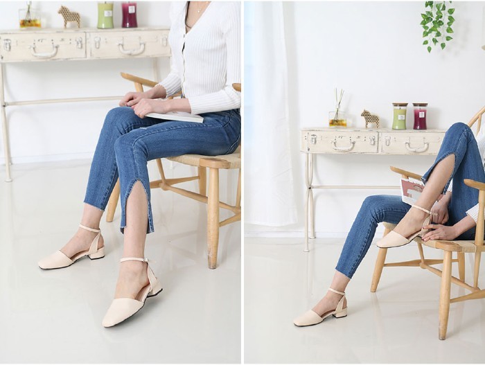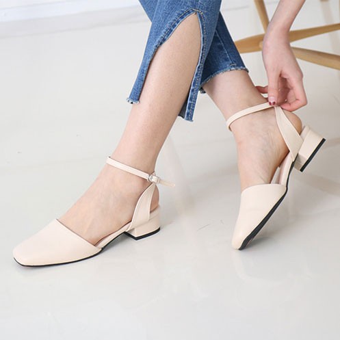 商品名:パンプス レディース アンクルストラップ サイドオープン ローヒール 2018 春 ファッション 靴 婦人靴