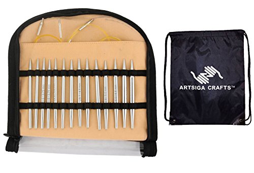 Bundle includes 1 Knitter's Pride Nova Platina Special 16-inch Interchangeable Tip Knitting Needles Set with 1 Artsiga Crafts Project Bag 120602