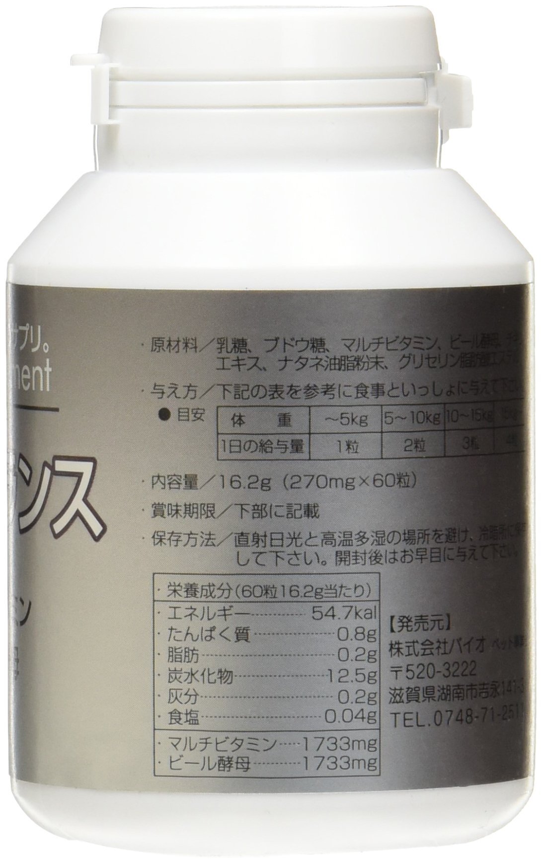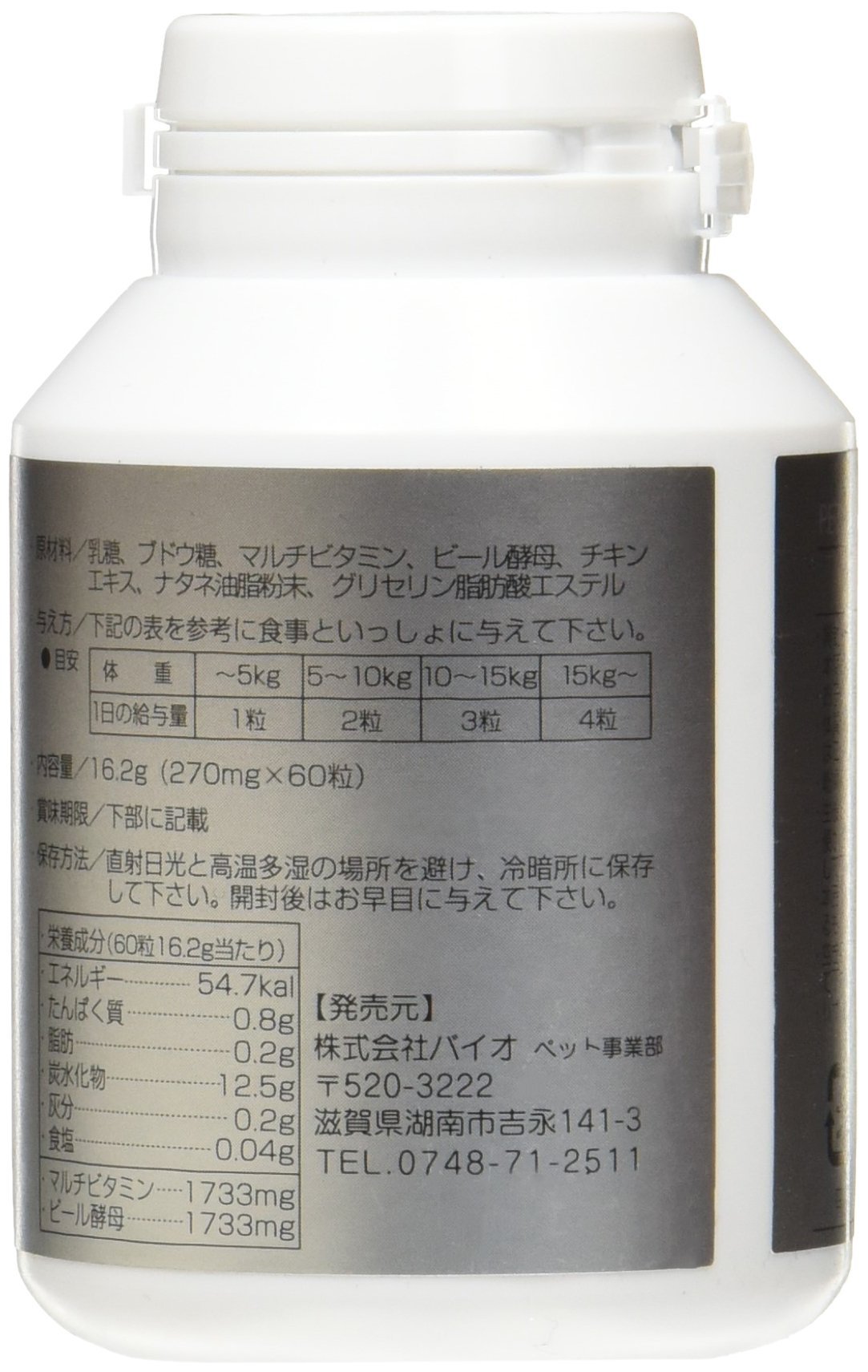 (Per 60 grams per 16.2 g) Energy: 54.7 kala Protein: 0.8 g Fat: 0.2 g Carbohydrate: 12.5 g Ash: 0.2 g Salt: 0.04 g (multivitamin: 1733 mg, beer yeast: 1733 mg)