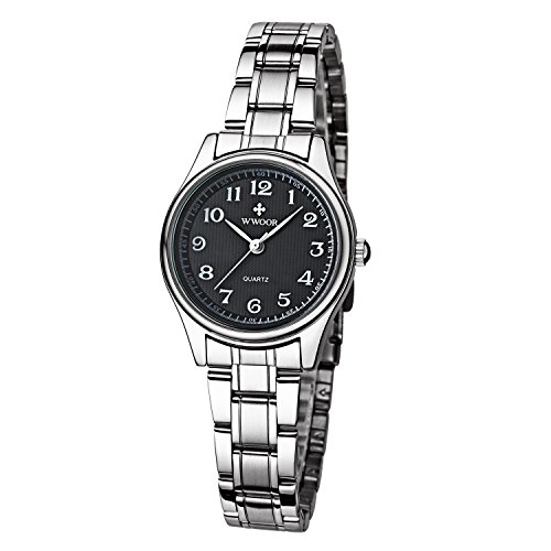 -. Title : WWOOR 腕時計 ファッション 薄型 ビジネス ステンレス鋼 クォーツ時計 防水 女性 黒色