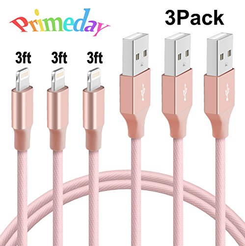 iPhone 7 Charger, Novtech 3Pack 3FT Apple Cable iPad Braided Charging Cables Lightning to USB Cable Cord 2017, Pink