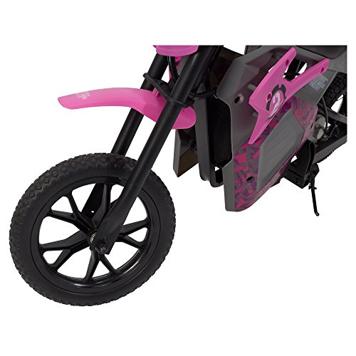 The EM-1000 E-Motorcycle from Pulse Performance Products allows riders to break free from the pavement and enjoy off-road shredding performance at up to 10 mph! Perfect for a child's first motorbike, the EM-1000 features 100 watts of power and a chain driven motor that delivers up to 40 minutes of continuous ride time on the 24-volt rechargeable battery system. The Instant Throttle Response (ITR) moto-inspired twist throttle brings instant acceleration and a caliper hand brake activates the rear drum brake for quick, safe stopping. A reinforced steel frame, fork, and handlebars enhance the motorcycle's durability while the puncture-proof knobby front tire and the air-filled knobby rear tire absorb all of the bumps. A simple LED light on/off indicator for safety and a power converter for charging is included. Designed for riders 8 years and older, weighing up to 120 pounds.Feature